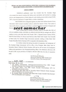 उत्तरी भारत के प्रमुख सिद्ध पीठ बाबा बालक नाथ मंदिर में गणना घोटाले के आरोपित दोनों कर्मचारियों को आज बाबा बालक नाथ मंदिर न्यास के अध्यक्ष ने अपनी शक्तियों का प्रयोग करते हुए दोनों कर्मचारियों को सस्पेंड कर दिया है। इस मामले में आदेश तत्काल प्रभाव से लागू हो गए हैं। दोनों कर्मचारियों को पुलिस हिरासत में लेने के बाद पिछले कल अदालत में पेश किया गया था जिसमें उनका एक दिन का रिमांड दिया गया था। आज अध्यक्ष ने अपनी शक्तियों का प्रयोग करते हुए इस मामले में कार्यवाही करते हुए दोनों कर्मचारियों को निलंबित किया है। इस मामले में जांच के साथ अन्य दोषी लोगों के खिलाफ हुई कार्रवाई अमल में लाने की मांग की जा रही है।
