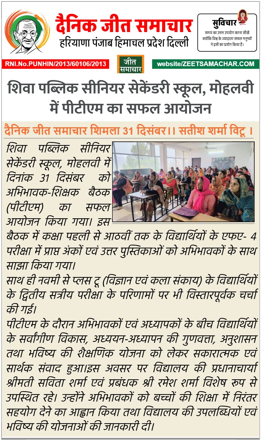 शिवा पब्लिक सीनियर सेकेंडरी स्कूल, मोहलवी में पीटीएम का सफल आयोजन
