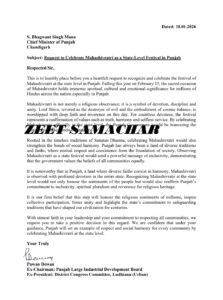 पत्र में इस बात पर भी ज़ोर दिया गया कि पंजाब में अलग-अलग धर्म मेल-जोल और भाईचारे से रहते हैं और महाशिवरात्रि पूरे राज्य में बहुत श्रद्धा और उत्साह के साथ मनाई जाती है। दीवान ने दोहराया कि राज्य-स्तर पर महाशिवरात्रि को मान्यता देने से लोगों की भावनाओं का सम्मान होगा और पंजाब का आपसी भाईचारे, आध्यात्मिक बहुलवाद और धार्मिक विरासत के सम्मान के लिए कमिटमेंट भी दोहराया जाएगा। उन्होंने कहा कि हमें पूरा भरोसा है कि यह कदम लाखों लोगों की धार्मिक भावनाओं का सम्मान करेगा, साझा भागीदारी को प्रेरित करेगा, एकता को मजबूत करेगा और सदियों से हमारी संस्कृति को आकार देने वाली परंपराओं को बनाए रखने के लिए राज्य की प्रतिबद्धता को उजागर करेगा।आखिर में, दीवान ने कहा कि हमें पूरा भरोसा है कि राज्य स्तर पर महाशिवरात्रि मनाकर, पंजाब हर समुदाय के लिए सम्मान और सामाजिक सद्भाव का एक उदाहरण स्थापित करेगा और मुख्यमंत्री से इस संबंध में सकारात्मक निर्णय लेने की अपील की जाती है।