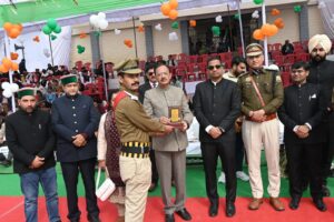 उन्होंने कहा कि पिछले तीन वर्षों में सरकारी क्षेत्र में लगभग 24 हजार विभिन्न पदों पर नियुक्तियां दी है। इसके अतिरिक्त निजी क्षेत्र में भी लगभग 57 हजार युवाओं को रोजगार प्रदान किया है।इस अवसर पर उद्योग मंत्री हर्षवर्धन चौहान ने जिला के विभिन्न स्वतंत्रता सेनानियों एवं उनके परिजनों को सम्मानित किया, जिनमें स्वतंत्रता सेनानी लेखराम, शंकर दास, स्वतंत्रता सेनानी समिति की अध्यक्षा प्रेमी देवी, वीर नारी हक्मी देवी, महंती देवी, जमना देवी और कौशल्या देवी शामिल रहीं। कार्यक्रम में विभिन्न विद्यालयों के छात्र-छात्राओं द्वारा रंगारंग सांस्कृतिक प्रस्तुतियां दी गईं। इस अवसर पर राष्ट्रीय गीत ‘वंदे मातरम’ की 150वीं जयंति के उपलक्ष में बंदला स्कूल के विद्यार्थियों द्वारा विशेष गायन भी किया गया।खेल क्षेत्र में उल्लेखनीय उपलब्धियों के लिए गुनगुन देवी, सविता कुमारी, सुजल ठाकुर, प्रीति ठाकुर, निर्जल ठाकुर और सुमन चड्ढा को सम्मानित किया गया।