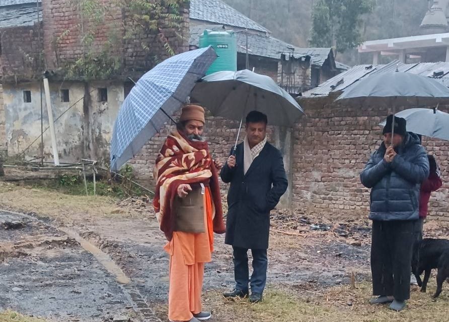 गौशाला हार में व्यास पीठ निर्माण के लिए मौके का मुआयना करते हुए हिमुडा डायरेक्टर इंजीनियर राजेश बन्याल बाबा घनश्यामपुरी के साथ