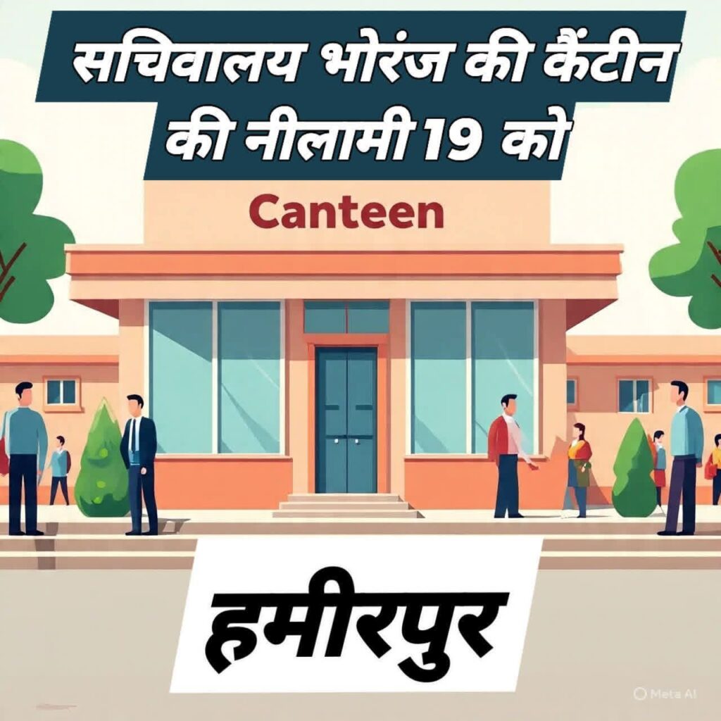 मिनी सचिवालय भोरंज के परिसर के कमरा नंबर 102 में कैंटीन को तीन वर्ष के लिए मासिक किराये पर दिया जाएगा। इसकी नीलामी प्रक्रिया 19 फरवरी को सुबह 11 बजे मिनी सचिवालय परिसर में आरंभ होगी।