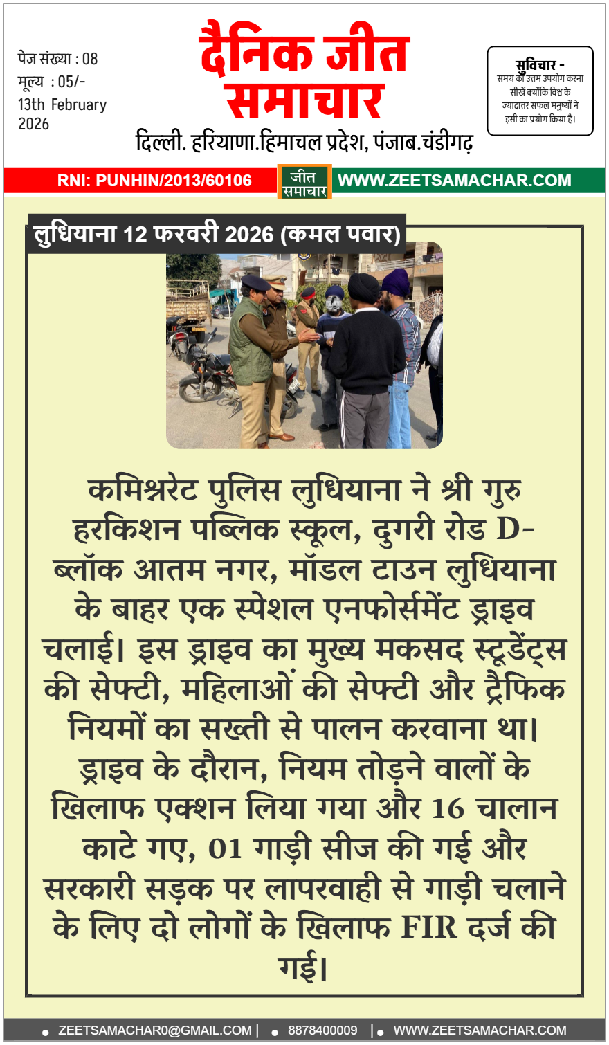 कमिश्नरेट पुलिस लुधियाना ने श्री गुरु हरकिशन पब्लिक स्कूल, दुगरी रोड D-ब्लॉक आतम नगर, मॉडल टाउन लुधियाना के बाहर एक स्पेशल एनफोर्समेंट ड्राइव चलाई