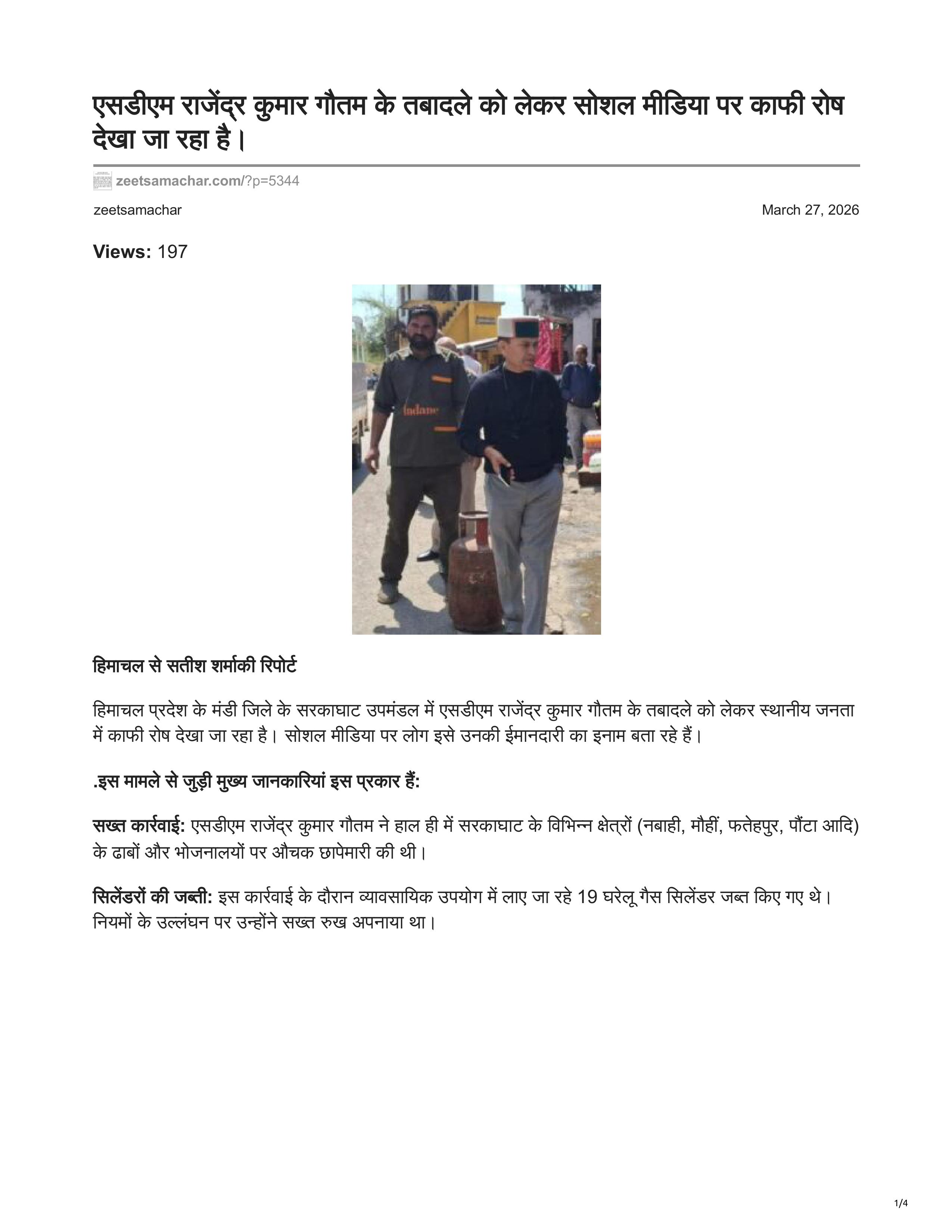 अब हाई कोर्ट भी जीत समाचार की खबर पर मुहर लगा रहा है। SDM राजेंद्र गौतम का सरकाघाट से शिमला ट्रांसफर कर दिया गया था। उन्हें लगातार बदला जा रहा था। जीत समाचार ने इस खबर को प्रमुखता से उठाया कि सरकाघाट के SDM का ट्रांसफर बदलाव के भाव से किया गया है। जब उन्होंने घरेलू गैस के गलत इस्तेमाल को रोकने के लिए सख्त कार्रवाई की तो जनता को यह पसंद आया, लेकिन एक कांग्रेसी नेता को उनका व्यवहार पसंद नहीं आया क्योंकि नेता के सपोर्ट से भी घरेलू गैस सिलेंडर जब्त किए गए। ऐसा करने में अहम भूमिका निभाने वाले लोग कहते हैं।