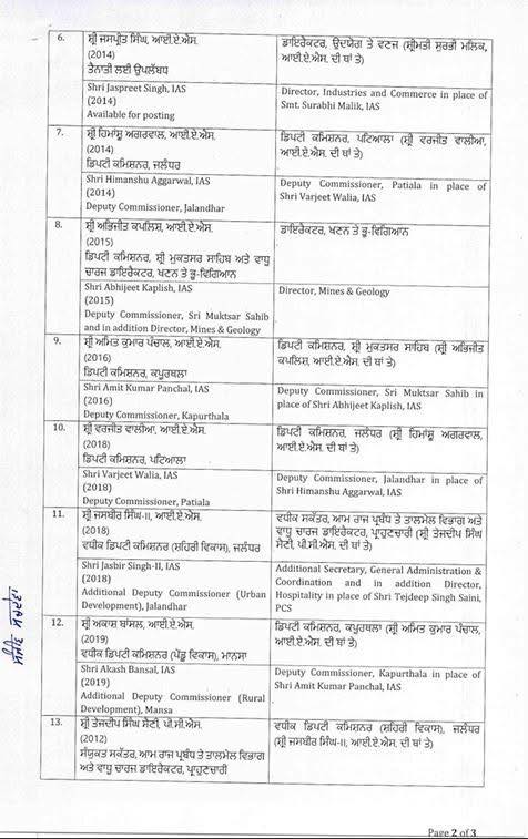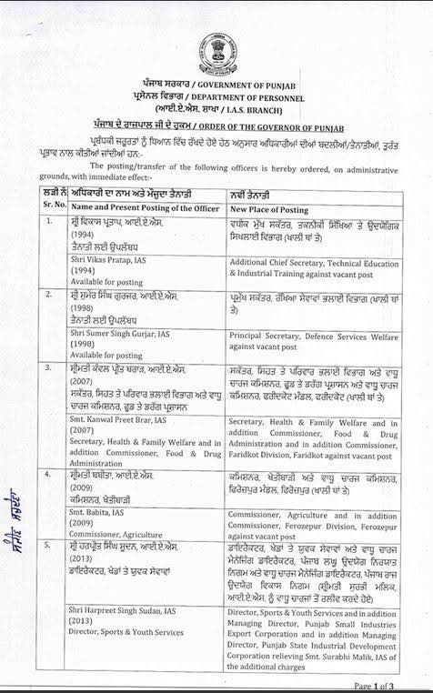 पंजाब में बड़ा प्रशासनिक फेरबदल एक PCS और 12 IAS अधिकारियों का ट्रांसफर